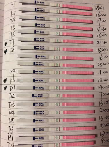 这是我们的第三个备孕月,第一个月想要顺其自然,然后顺其自然地没怀上像我这种急性子第二个月立马上排卵试纸了,就是图四的结果,感觉每个月开奖好煎熬,尤其是没中的人。。。