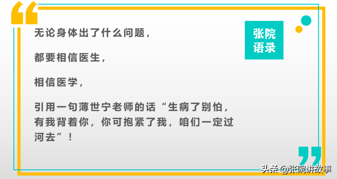 最后补充一下,无论身体出了什么问题,都要相信医生,相信医学,引用一句薄世宁老师的话“生病了别怕,有我背着你,你可抱紧了我,咱们一定过河去”!