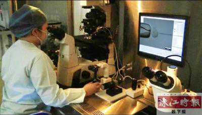 ■市一医院生殖医学中心医生在实验室做助孕实验。