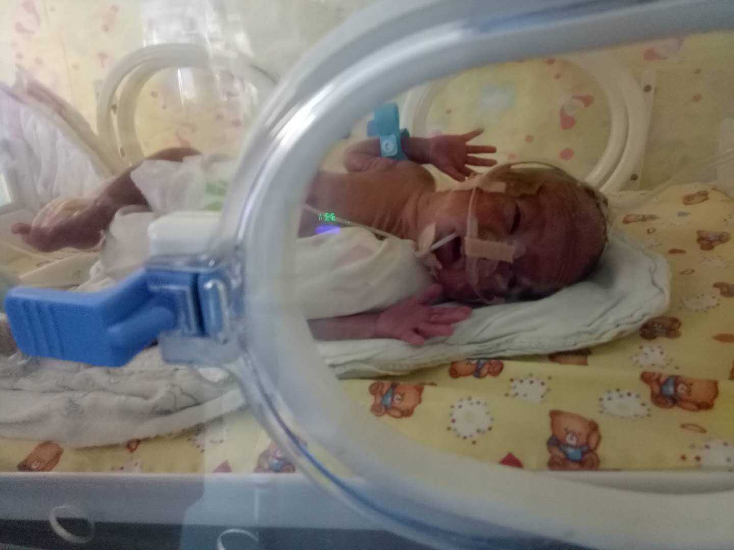 这是我,我是双胞胎姐姐,我和我的双胞胎弟弟都在新生儿重症监护室。4月24日晚,妈妈生下龙凤胎宝宝一男一女。但是我和弟弟的胎龄才26周+4天,均属于早产低体重儿,我们都还没有名字,刚出生就被医护人员送进新生儿重症监护室。现在已经35周了,我们除了呆在保温箱里还没见识过外面的世界,也没有感到过爸爸妈妈怀抱的温暖。