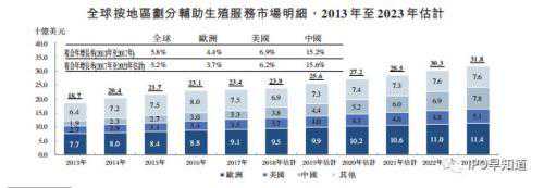 在锦欣医疗的招股书中提到,全球辅助生殖服务市场由2013年的187亿美元增长至2017年的234亿美元,复合年增长率为5.8%,预计2023年增至318亿美元。