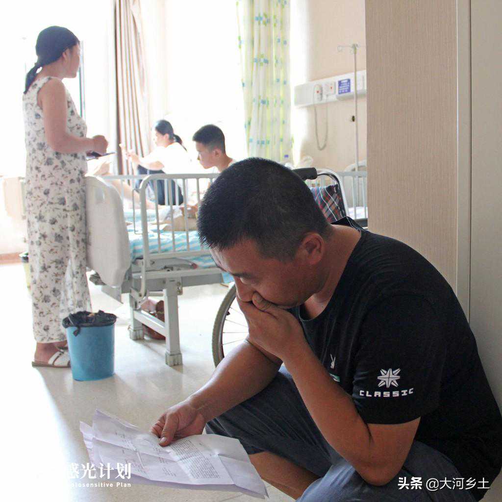 刘宝福更加努力去工作,想让日子慢慢好起来,然而一波未平又起一波。2019年6月初,8岁的儿子刘书岩感到左大腿疼痛难忍,在县医院检查说是肌肉拉伤。刘宝福以为是孩子调皮不小心受伤造成的,并未放在心里,在医院买好药就回家了。一个月过去,小书岩的腿不但没有好转反而加重。刘宝福带着儿子去了吉林大学附属第一医院做检查,竟确诊为原始神经外胚层瘤。图为7月27日,刘宝福在看儿子的检查结果。