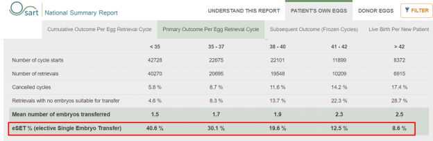 三、选择单胚胎移植率eSET%(electiveSingleEmbyroTransfer)