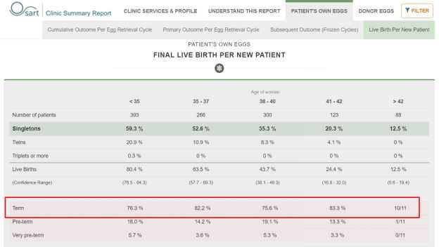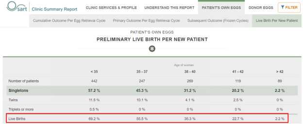一般来讲,只要诊所在各个年龄段的活产率超过全美水准,就说明这个诊所的水平相当好。同时要考虑其他几项指标。