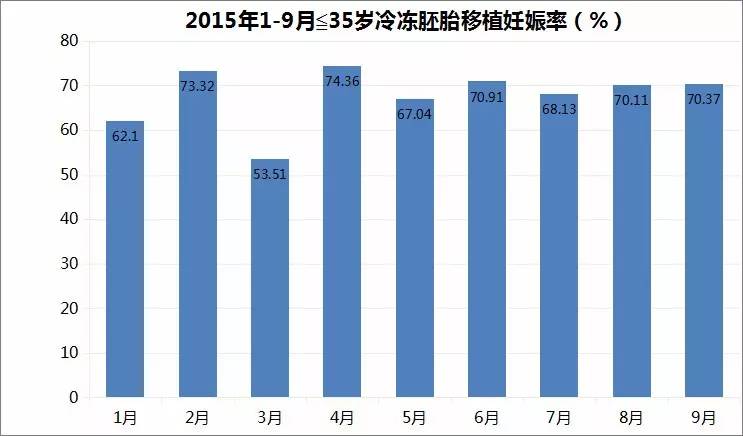 2015年1-9月≦35岁冷冻胚胎移植妊娠率