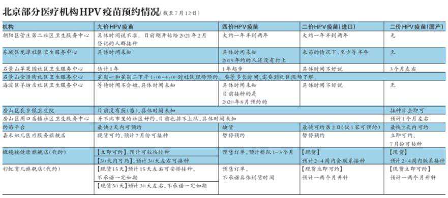 唐玲和王卓的情况到底是个案还是普遍现象?北京HPV疫苗预约情况如何?7月初到7月15日,新京报记者先后体验十多家可提供预约接种服务的渠道,包括社区卫生服务中心、私立医院、电商平台等,国产二价疫苗预约相对顺利,进口疫苗需要一定的等待期,四价和九价疫苗较为紧张。
