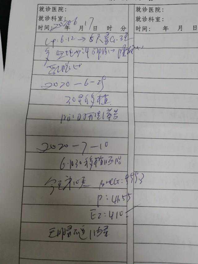 这次是要30号放2个胚胎,6月29号过来开放胎后要吃的中药,主要是健脾补肾气的安胎中药。于7月10过来就诊,就是放胎的第10天:HCG:999.3P:42.55E2:420,数值非常好。
