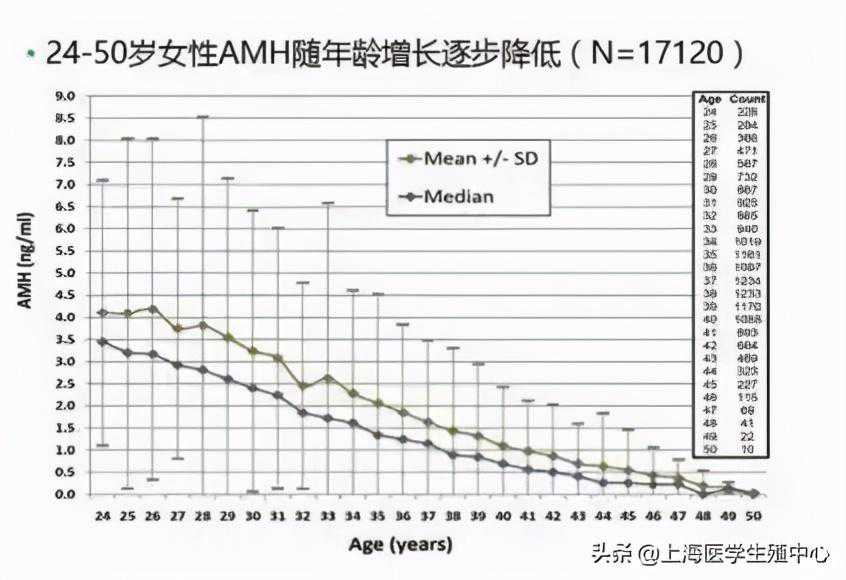 AMH是随着年龄逐渐下降的。就好像每个女性就好比出生的时候就建好了卵子储蓄账户,随着年纪的增大不断支出卵子,储蓄慢慢减少,直到衰竭……这个过程是女性不可逆的生理变化。