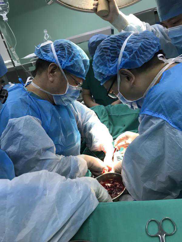 在该院麻醉科医生袁峰等人的合作努力下,患者从进入手术室,到麻醉完成开始切皮,仅用了8分钟。而麻醉完成后,王亮武、陈志龙以及朱峰三位主刀医生也在2分钟内,完成了开腹找到出血部位并进行止血等工作,最终,在该孕妇腹腔内,清出了2500-3000ml的积血,相当于人体三分之二的血液。